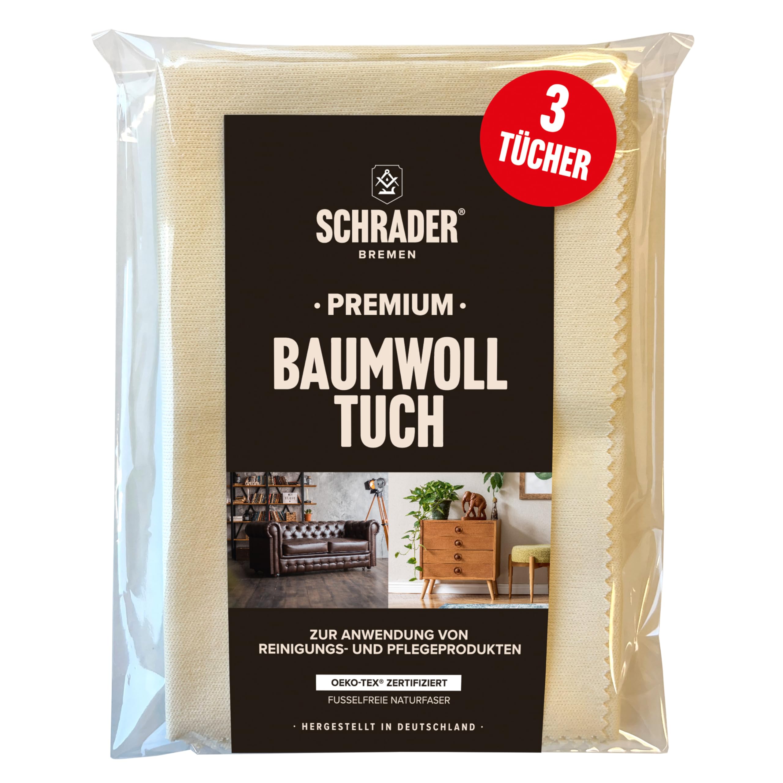 Schrader Premium Baumwolltuch - Poliertuch für alle Oberflächen, Möbel, Kleidung, Leder, Holz - cremefarben - 25x33cm - 3 Stück