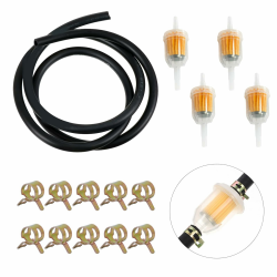 【Kraftstoffschlauchsatz】: Das benzinschlauch kit beinhaltet 2 m kraftstoffschlauch(innendurchmesser 0,5 cm, außendurchmesser 0,9 cm), 4 kraftstofffilter(länge 10 cm, durchmesser 3,5 cm, schnittstelle 0,5 cm) und 10 schlauchklemmen(innendurchmesser 0,9 cm). Sie müssen diese teile nicht separat kaufen, die verschiedenen komponenten des kits sind in der größe kompatibel.