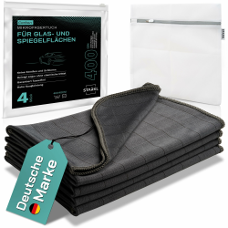 UNSER STARKL-SET - 4x Premium Microfasertuch Autopflege in 40 x 40cm und 400GSM. Unser Bonus: 1x Wäschenetz für die optimale Reinigung der Fensterputztücher danach.