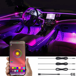 TABEN Neonleuchtleisten für das Auto, 4-teiliges Set, mit 8 Farben, zur Autodekoration, Stimmungslicht, Innenraumbeleuchtung, wasserdicht, DC12V (1 Set)