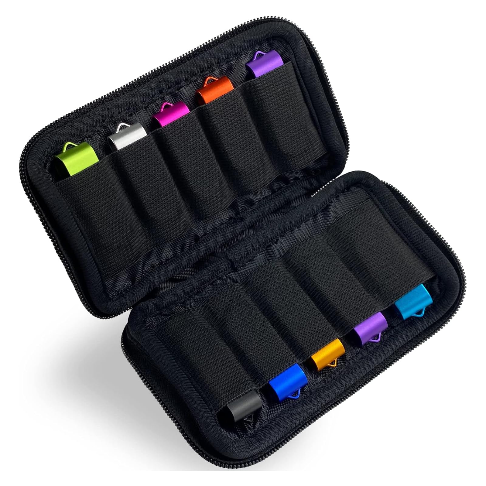 Schlank und Kompakt: Der usb stick case misst 16,5 x 9,5 x 1,5 cm und wiegt 57 g. Er ist kompakt und einfach zu tragen. Die USB Stick tasche verfügt über zehn Steckplätze, um Ihre Sticks zusammenzuhalten und sie durch die äußere Polsterung zu schützen.