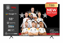 TCL 55T8B 55-Zoll QLED Pro 144Hz Onkyo Gaming Fernseher, 4K UHD, HDR Pro, Google TV (Dolby Vision IQ & Atmos, Motion Clarity, Freihändige Sprachsteureung, Kompatibel mit Google Assistant & Alexa)