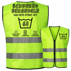 Die Weste hat eine fluoreszierende grüne Farbe und reflektierende Streifen, was ihn zu einem umwerfenden Protagonisten auf der Party macht.