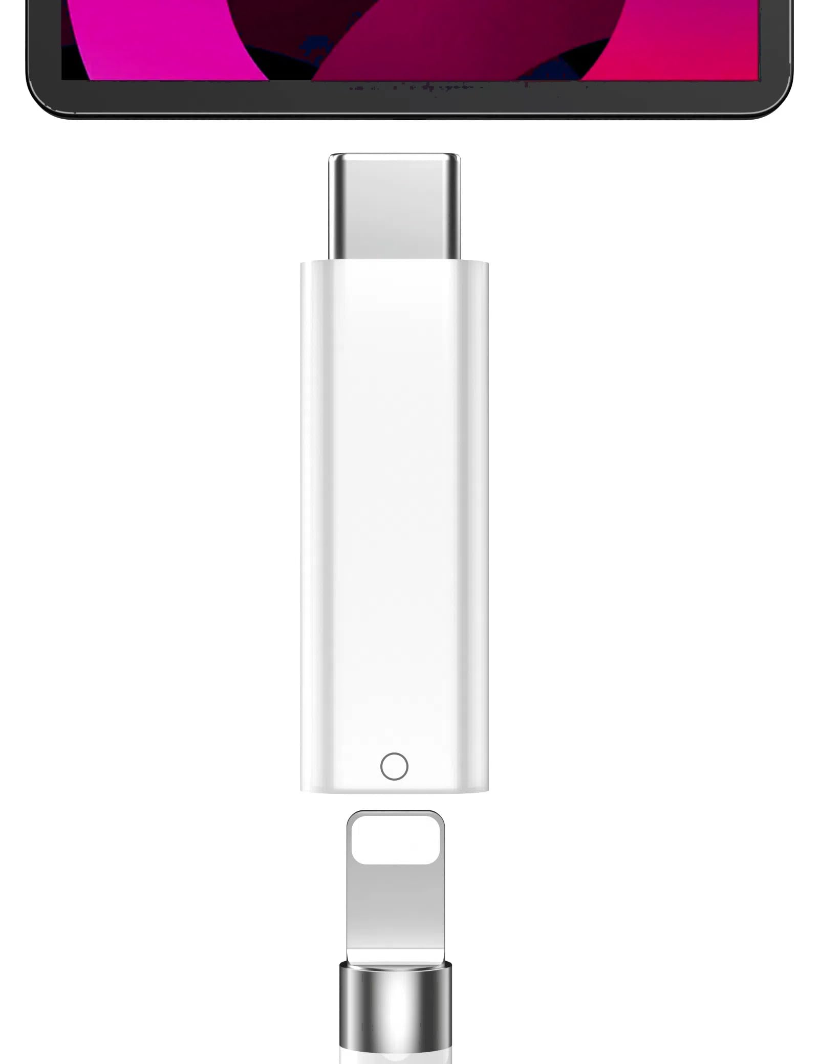 Flexibel nutzbar : Erfüllt sowohl Kopplungs- als auch Ladeaufgabe für den Pencil – funktioniert auch mit externen Ladegeräten