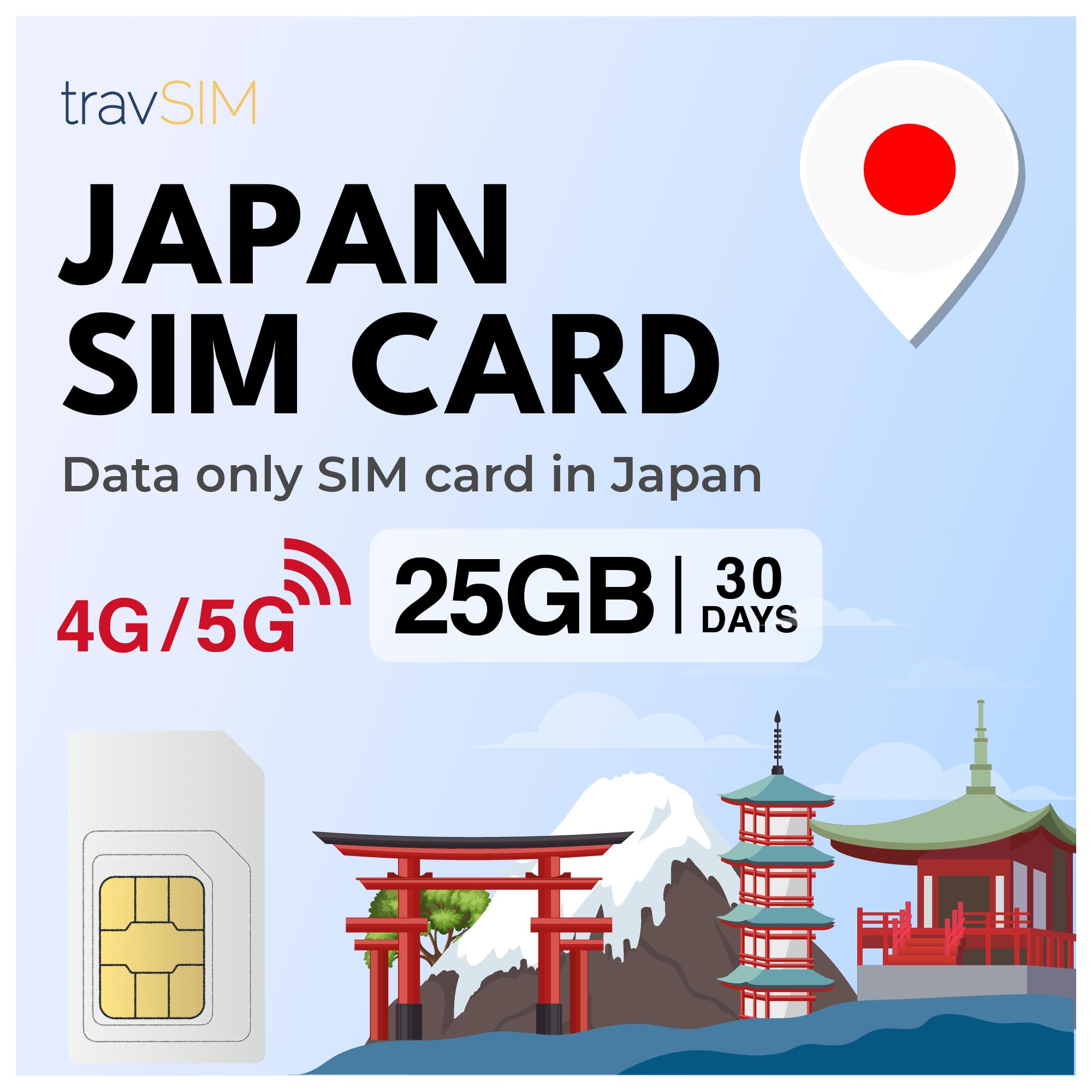 travSIM SIM Karte Japan | 30 Tage - 25GB Daten SIM | 5G/4G Hochgeschwindigkeitsdaten | Japan SIM Karte, für unbegrenzten Internetzugang für Google, Facebook, Whatsapp, Instagram und mehr 30 Days - 25GB