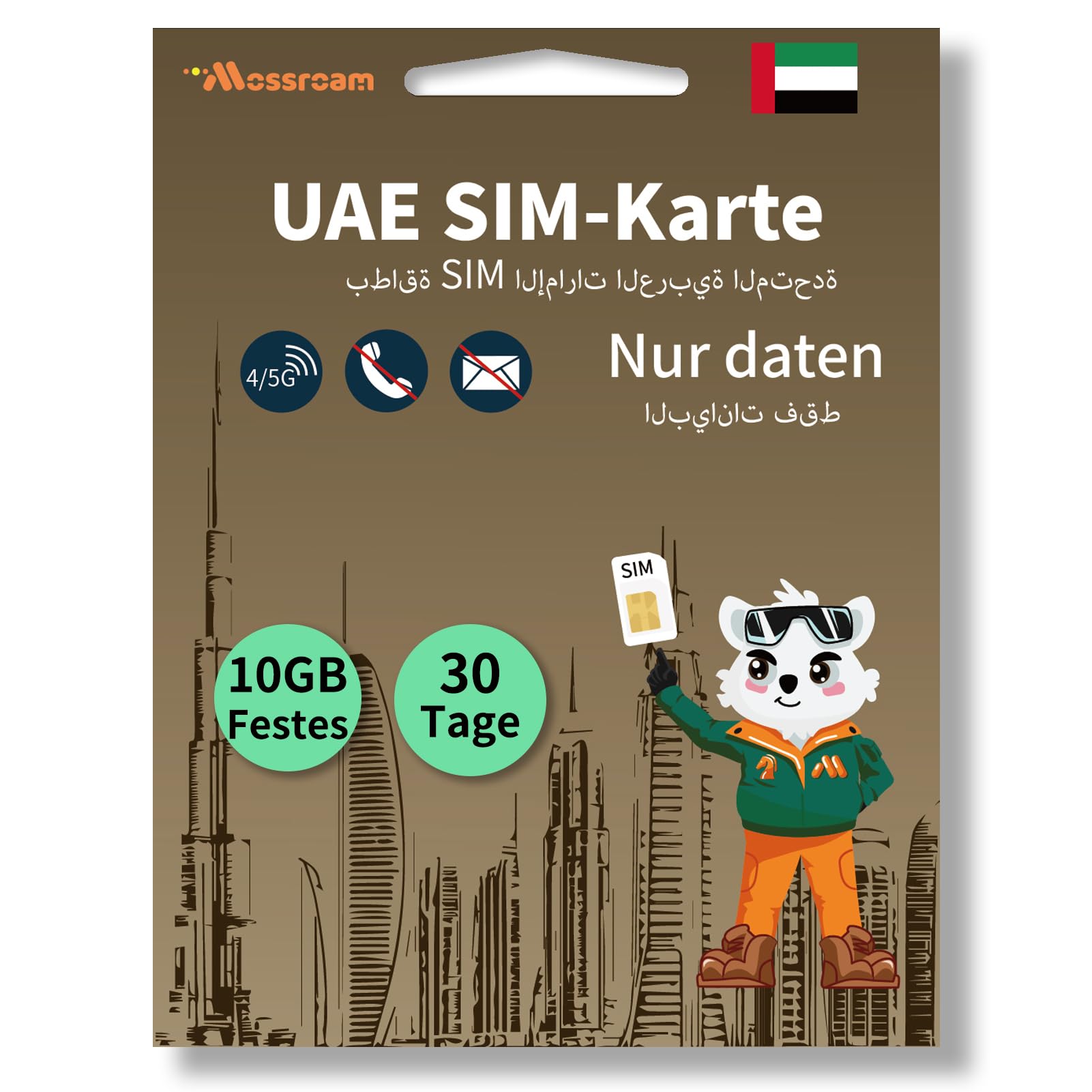 VAE-SIM-Karte – 30-Tage-Datentarif, 10 GB schnelles 4/5G LTE-Internet, Prepaid und kein Tageslimit, ideal für Touristen und Geschäftsreisende 30 Tage, insgesamt 10 GB