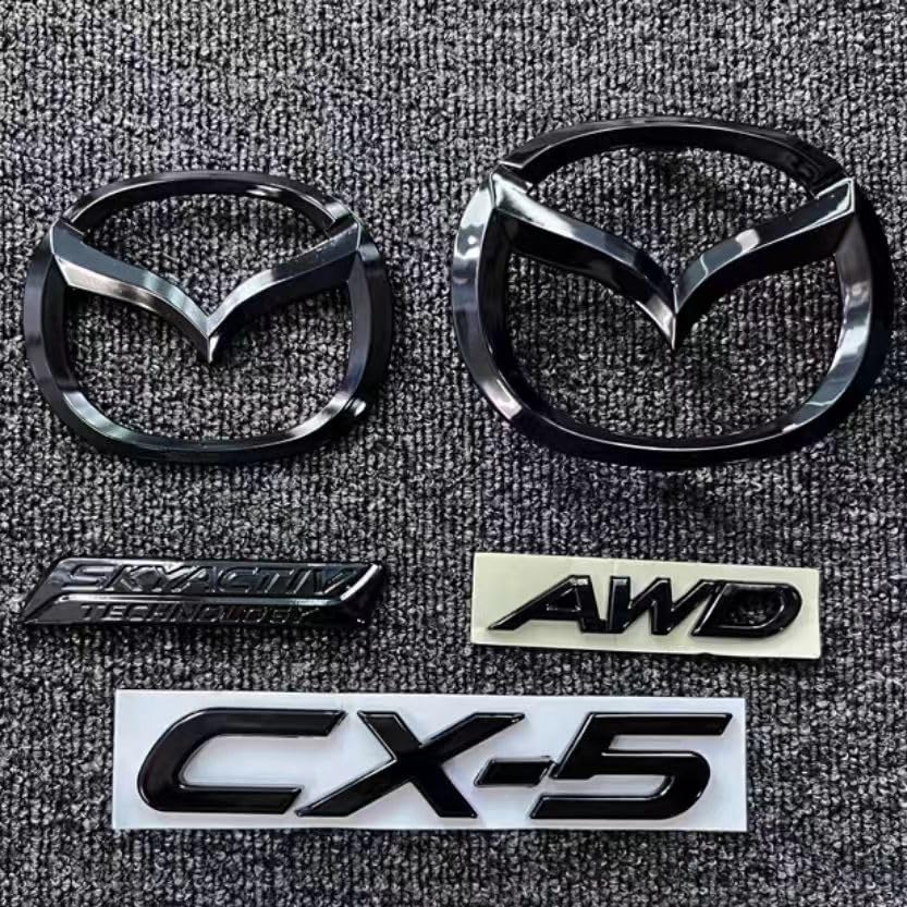 vorne hinten Ersatz Emblem Kit für Mazda CX-5 2017-2021,Schwarz Kühlergrill Kofferraum Plakette Zeichen Badge Aufkleber Logo 3D Metall Kfz Dekor Tuning Zubehör,just Rear Logo normal Just Rear Logo
