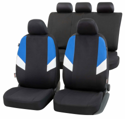 Walser Auto-Sitzbezug Cala Komplettset, Universal PKW-Sitzbezüge 4-teilig, Auto-Schonbezüge, 2 Vordersitzbezüge, 1 Rücksitzbezug schwarz-blau