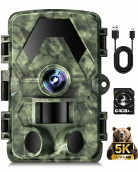 5K HD-Pixel und Nachtsichtfunktion: Die Wildkamera hat eine 5K-Auflösung und 60MP Pixel. Es ermöglicht Ihnen, die aufregenden Momente, in denen Tiere vorbeiziehen, lebendig festzuhalten, sei es in Form von Fotos oder Videos. Mit den nicht leuchtenden LED-Leuchten können Sie nachts Bilder von Tieren machen, ohne sie zu stören, und so ihr tägliches Leben nachbilden. 130 Weitwinkel und wasserdichte Funktion: Diese Wildkamera hat einen Weitwinkel-Erfassungsbereich von 130 Grad. Es kann Tiere in einem großen Bereich fotografieren und bietet Ihnen so eine breitere Sicht. Die Außenkamera ist wasserdicht nach IP66 und kann bei regnerischem und nebligem Wetter verwendet werden, um sicherzustellen, dass Sie keine tierischen Momente verpassen. 0,05 Sekunden Auslösegeschwindigkeit: Die Wildkamera hat eine Auslösezeit von lediglich 0,05 bis 0,3 Sekunden. Sobald ein Tier den 98 Fuß langen Beobachtungsbereich betritt, kann die Kamera über die Sensorlinse schnell ein sich bewegendes Ziel erkennen, um Bilder und Videos aufzunehmen. Danach nimmt die Kamera die Bilder und Videos automatisch auf und speichert sie auf der Speicherkarte (die mit der Kamera geliefert wird). Bequemlichkeit: Die Außenkamera verwendet 1,5-V-AA-Batterien (nicht im Lieferumfang enthalten) für die Stromversorgung, sodass kein direktes Anschließen erforderlich ist. Es ist praktisch für die Beobachtung von Wildtieren. Es ist sehr praktisch, um an Orten verwendet zu werden, an denen es schwierig ist, ein Netzkabel anzuschließen, wie z. B. auf Bauernhöfen und in Hausgärten. Vollständiges Zubehör: Die Wildkamera wird mit einer 64-GB-Speicherkarte mit hoher Kapazität, einem elastischen Gurt, einem Datenkabel und einem Netzkabel geliefert, die Ihre vielfältigen Anforderungen erfüllen.