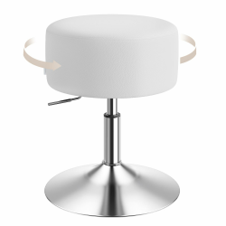 WOLTU Schminktisch Hocker, Schminkstuhl, Barhocker Rund, Höhenverstellbar, 360° Drehbar mit Verdickter Polsterung, Kunstleder Bequemstuhl für Schminktisch, Schlafzimmer, Esszimmer, Weiß, BH14ws-1 Weiß Kunstleder