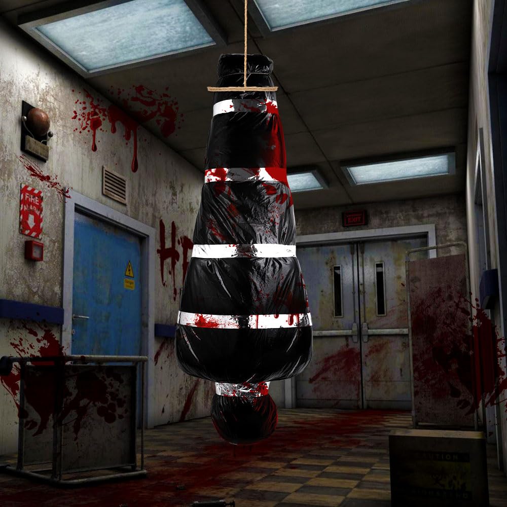 【Premium-Material】Die Halloween-Leichenattrappe besteht aus hochwertigem PE-Kunststoff – bruchfest, reißsicher und mit echter Optik: glänzend, strukturiert und lebensecht. Perfekt für Outdoor- und Dauernutzung, lässt sie sich entlüftet oder gefaltet platzsparend verstauen, bis zur nächsten Gruselsaison.