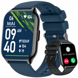 ZOSKVEE Smartwatch für Damen Herren, Fitnesstracker 2 Zoll Touch-Farbdisplay mit Telefonfunktion, Armbanduhr Blutdruckmessung Herzfrequenz Schlafmonitor SpO2, Sportuhr IPx7 Wasserdicht Schrittzähler Silikon Blau+schwarz