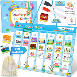 🌟 Zweonto Wochenplaner Kinder Magnetisch - Inkl. 219 Magnete & 2 Stift - Montessori Magnettafel