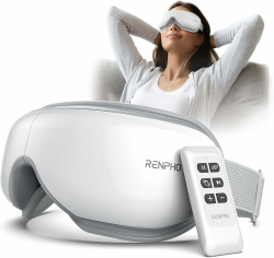 RENPHO Augenmassagegerät mit Wärmefunktion & Fernbedienung, Eyeris 1 Massagebrille gegen trockene Augen & Migräne, Bluetooth Musik, Faltbar, Ideales Wellness Geschenk RF-EM001R-WH