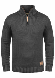!Solid SDPetro Herren Strickpullover Troyer Grobstrick Pullover mit Troyerkragen Rippbündchen Label-Details Baumwollmischung Regular fit XL Dark Grey Melange (8288)
