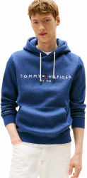 Tommy Hilfiger Herren Hoodie Tommy Logo mit Kapuze M Blue (Aegean Sea Heather)